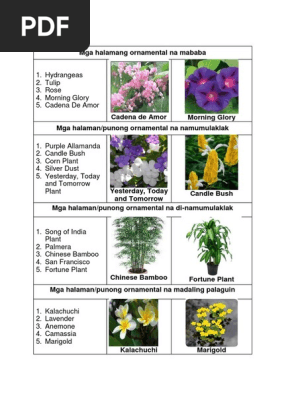 Jan 07 2021 Napagkakakitaan maaaring maibenta ang mga halamang ornamental na hindi naitanim o magpunla o magtanim sa paso sa mga itim na plastik bag o lata ng mga halamang ornamental na puwedeng ibenta. Jul 12 2015 Mga halamang puno ornamental na namumulaklak - 272334 Gawain 3. Halimbawa ng halamang di namumulaklak.