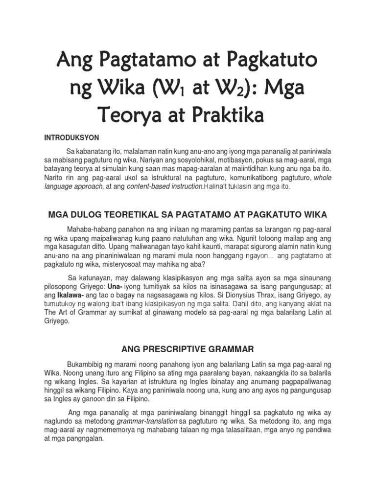 4 na teorya sa pagkatuto ng wika. Modyule sa Filipino 4 INTRODUKSYON SA PAG-AARAL NG WIKA Ang Pagtatamo at Pagkatuto ng Wika W 1 at W 2. Kimjeri04pch7yr kimjeri04pch7yr 26072018. Mga Tradisyunal na Teorya sa Pagkatuto ng Wika Teoryang Batay sa Gawi Behaviorist Nuong 1968 binigyang-diin ng behaviorist na si Skinner Finocchiaro 1986 ang kahalagahan ng pangganyak pagsasanay at pagpapatibay upang malinang ang intelektwal na kakayahan sa wika ng mag-aaral.